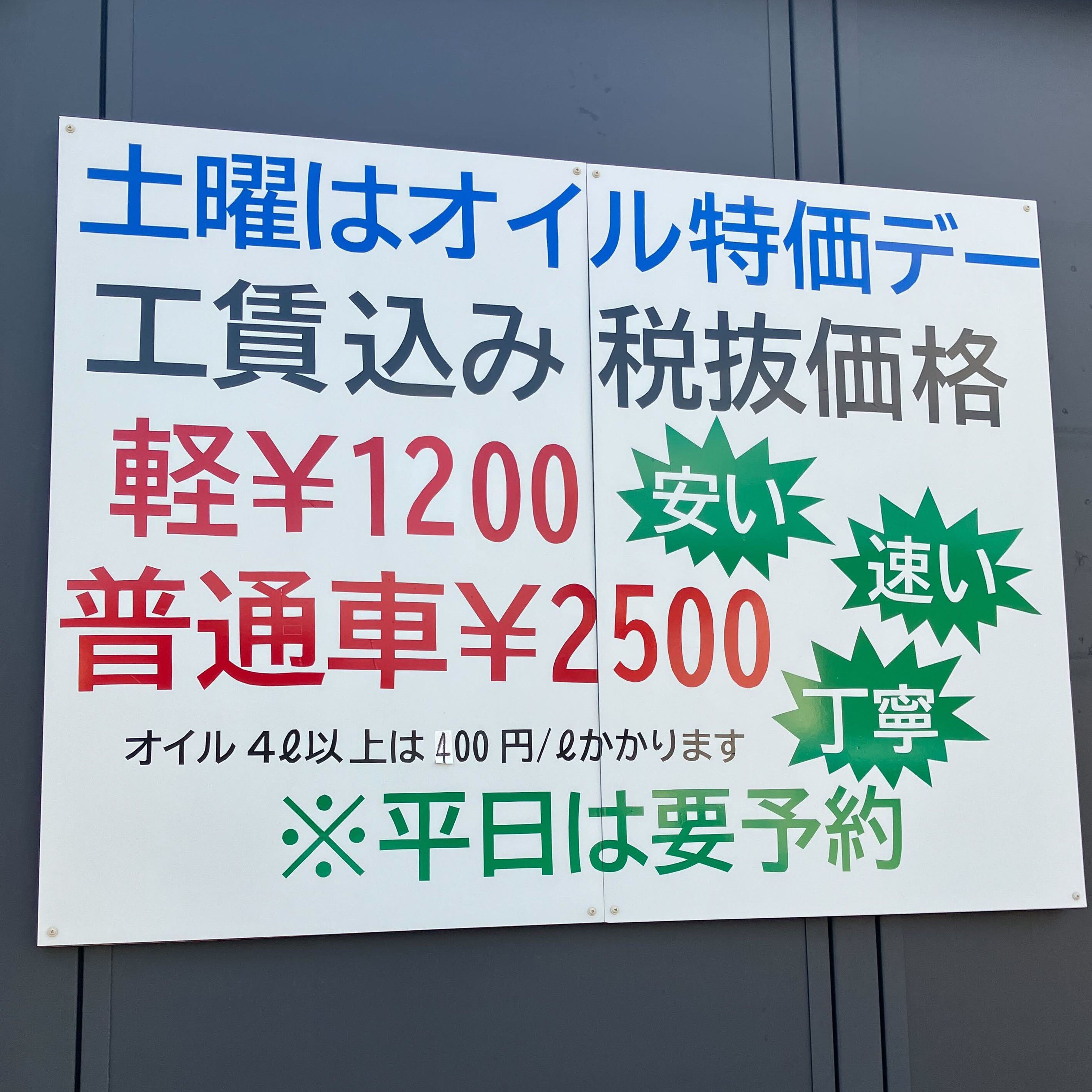 毎週土曜日は最安値でオイル交換を提供いたします。
